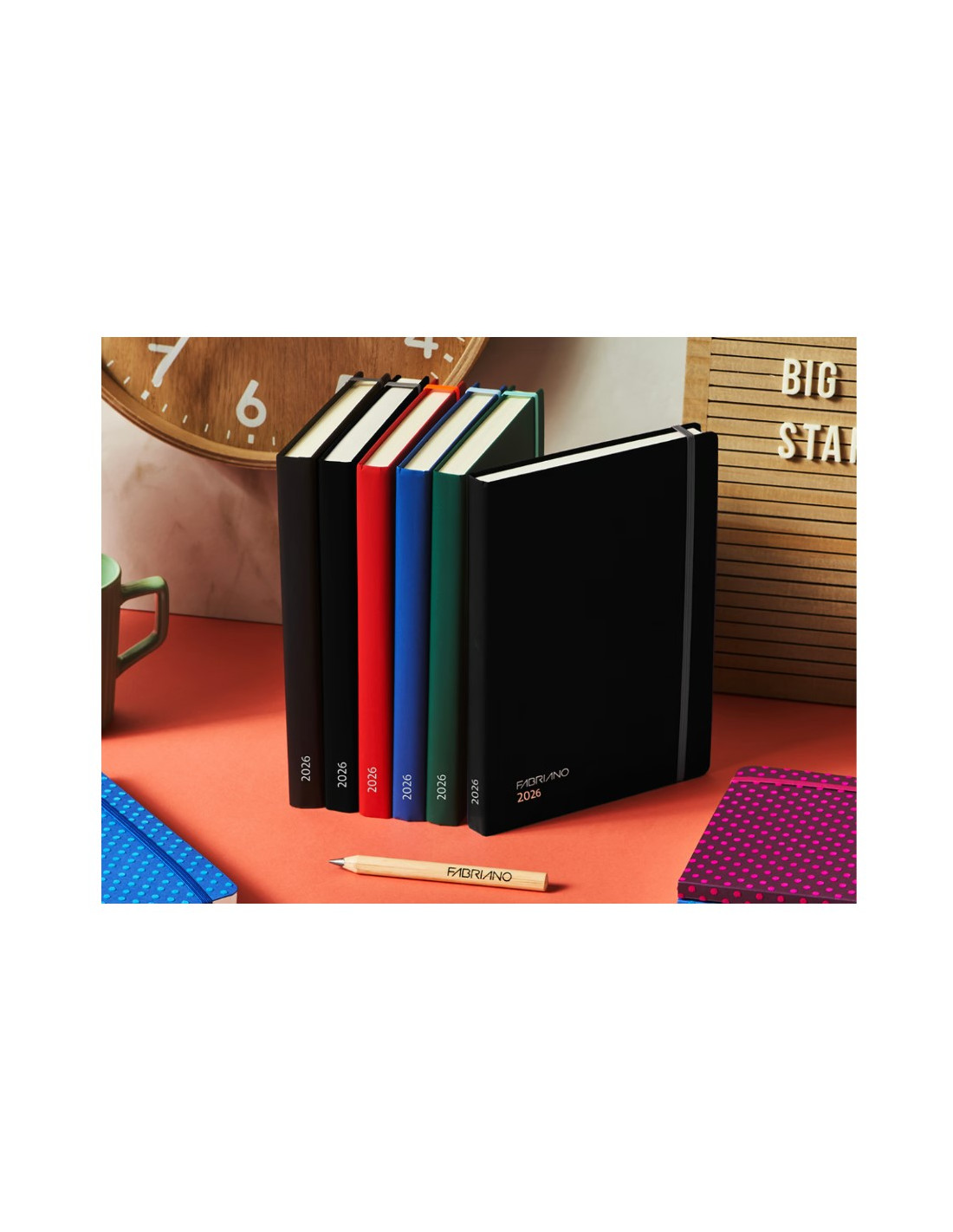 L’agenda Ispira 2026 unisce eleganza e praticità. La copertina è realizzata con una carta dalla morbidezza inconfondibile, una mano vellutata grazie alla speciale finitura superficiale soft touch. È resistente agli schizzi d’acqua, certificata FSC® di pura cellulosa ECF. Disponibile in quattro colori vivaci — blu royal, verde, nero e rosso — si distingue per i dettagli curati: elastico esterno a contrasto, risguardi personalizzati e una pratica tasca interna.