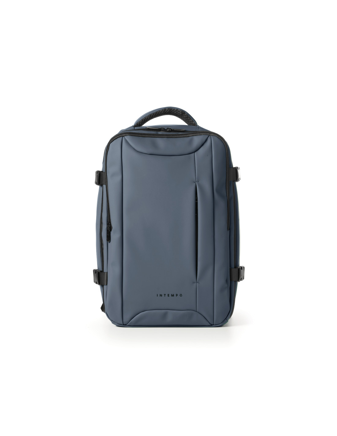 Zaino cabin-bag Drop2Go in morbido materiale gommato, resistente alla pioggia, grande vano centrale, tasca posteriore per notebook 15 pollici, tasche frontali con zip, maniglia superiore imbottita, tracolle ergonomiche – misure adatte a bagaglio aereo a mano. Dimensioni 25x20x40