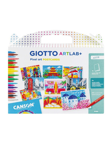 Esplora l’Arte con Giotto Artlab Pixel Art Scopri l’arte di creare immagini dettagliate con Giotto Artlab Pixel Art. Usa quadratini colorati per dare vita a cartoline uniche e città iconiche. Perfetto per artisti creativi! Kit Completo per Creazioni Uniche La confezione include un album CANSON Pixel Art Notebook, 24 pennarelli Giotto Turbo Color e 9 stampe paesaggistiche. Tutto il necessario per esplorare l’arte digitale con facilità. Pennarelli Turbo Color di Alta Qualità I pennarelli Giotto Turbo Color offrono colori vivaci e duraturi. Ideali per dettagli precisi e opere d’arte pixelate straordinarie. Perfetti per artisti di tutte le età. Album Canson Pixel Art Notebook L’album CANSON offre 40 fogli A4 quadrettati bianchi. Perfetto per creare immagini pixelate dettagliate e colorate. Un modo innovativo per esplorare la creatività artistica.